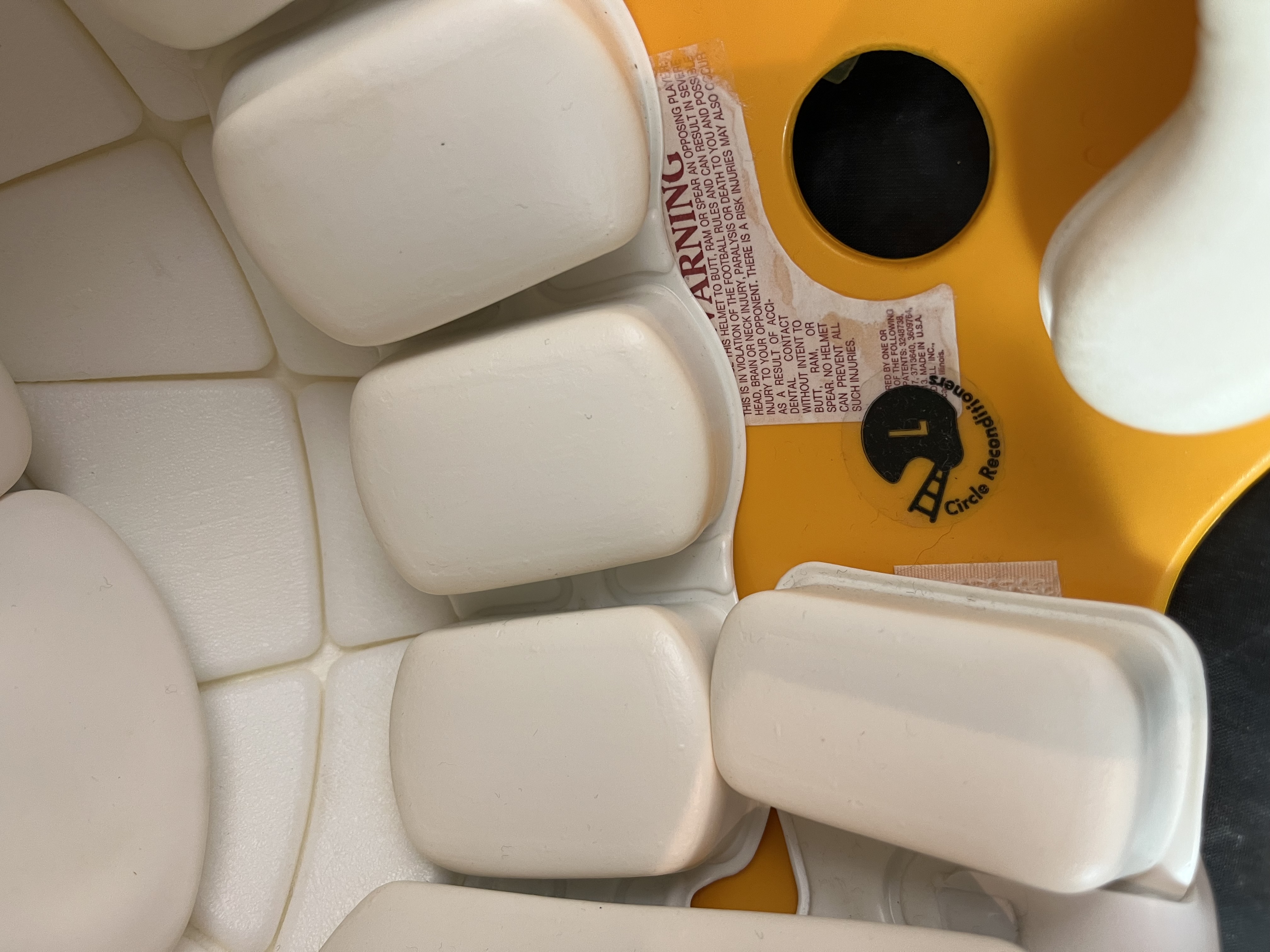 The helmet is all original and complete with the VSR4 interior cell padding and Schutt EGOP model facemask, made famous by Packers Charles Woodson, Al Harris, and Tramon Williams. The helmet was released and sourced with the jawpads, which is a bit rare as normally the team keeps them prior to releasing a helmet. The 2000 mask is secured to the helmet using original clips and hardware. The helmet has no Packers player identifiers on the interior as is normally the case with helmets that Head Equipment Manager "Red" Batty releases to the public. There is a Circle Reconditioners sticker on the interior of the helmet. Circle has been the reconditioner of Packers helmets for decades. The helmet is in very nice display condition, signed by fan favorite Ahman Green.