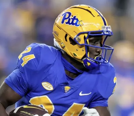 The stiping and side logos on the helmet are original, adhered well to the helmet, and positioned properly - matched to the positioning on photos of Pitt helmets during the 2023 season. The facemask is a Schutt F7-ROPO-SW model, secured to the helmet with its original clips and 1/4 turn fasteners at the top and side locations of the mask. Game decals include the team applied blue on clear warning labe, American flag, front and rear 3D bumper decals, and a #23 player identifier. It is uncertain if the identifier is for a rostered player, or the 23 was applied for the year of the helmet when it was signed by Narduzzi and released from the team.