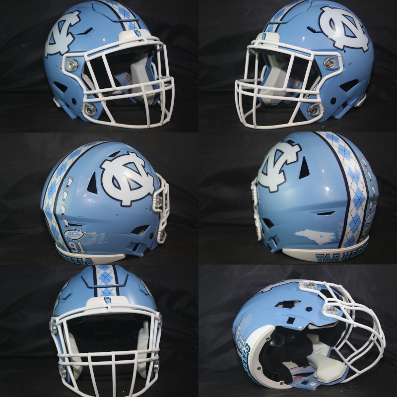 Game used, worn North Carolina helmet last used during the 2023 season. The helmet is original, complete, and unaltered or modified in any way.