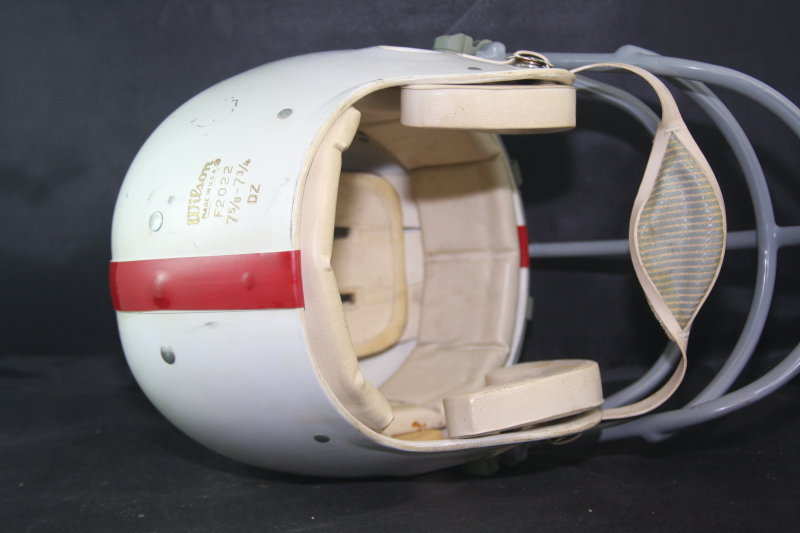 The Wilson suspension helmets are very rare and highly sought after in the helmet collector markt. The team during this period used primarily Riddell. Helmets. A quick search on internet photo sites shown few game photos with playeers wearing Wilson helmets - as indicated by the two (2) side suspension rivets below the “N” logos.