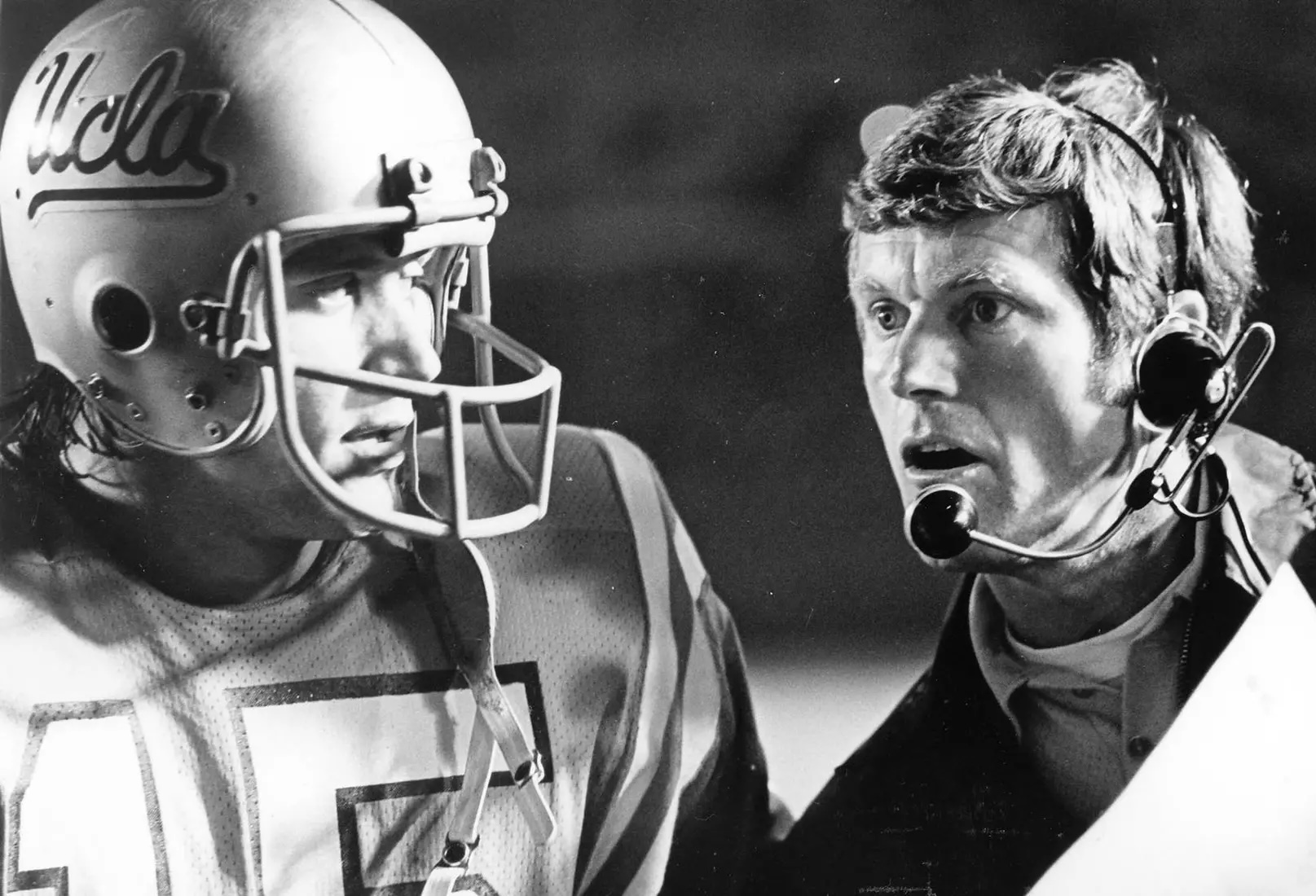 The helmet is a classic UCLA game used example, from the first season the team used logo decals. It remains in near mint, museum quality condition - highly sought after by fans and helmet collectors alike. If you know helmets, you know how rare a game used helmet like this is - the condition, the period/era, and the significance. Don’t wait on this one!