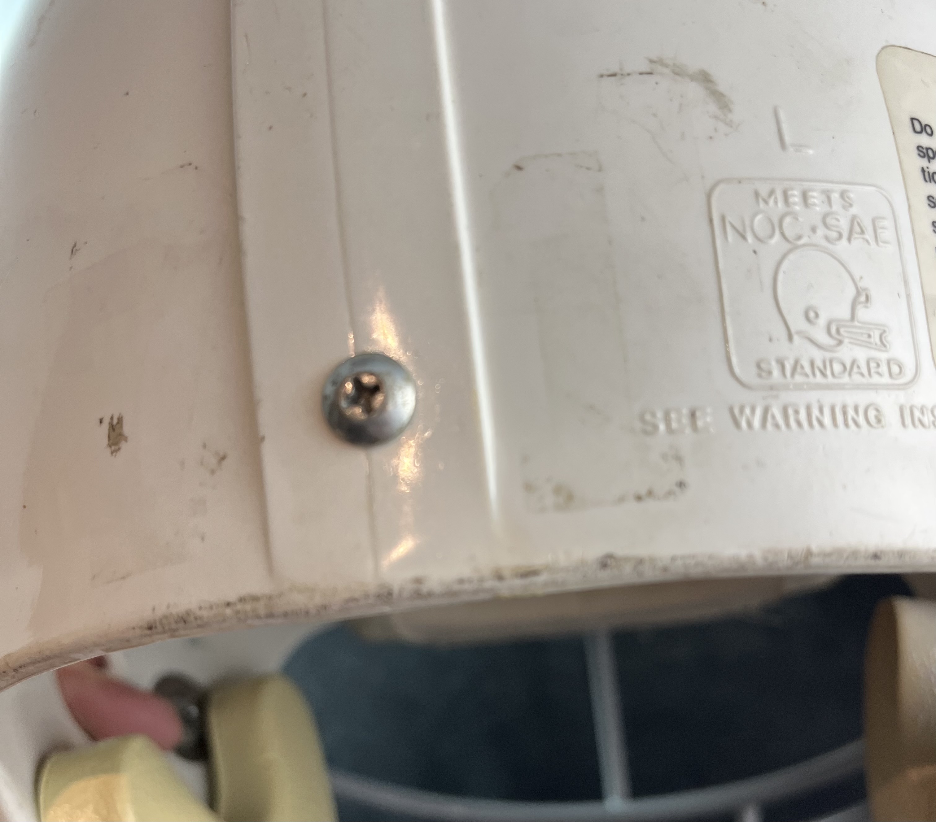 The Riddell WD1 model helmet is all original in a size large. The helmet has an original date code of 1983, so it has been used and reconditioned a number of times over the years before issuing to Tucker. The helmet had a team applied #71 player identifier on the rear of the helmet, which was removed prior to its release, with adhesive residue and shadowing still present on the rear. There is a team applied "label" with the #73, the model/size of the helmet, and the model of facemask and chinstrap - on the inside of the helmet as normally present in Cardinals game helmets.