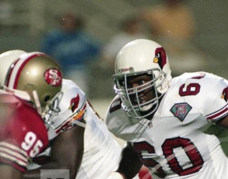 Arizona Cardinals Game Worn helmet from the 1994 season. The helmet was worn by Rookie sensation Anthony Redmon.
